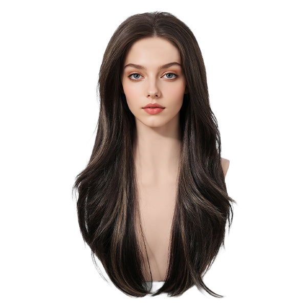 Elevate your style with the Mireille wig, a stunning 24-inch long-length, natural straight chestnut brown synthetic wig. This glueless design ensures easy application and maintenance. Perfect for women seeking a versatile look, it features a lace front for a seamless appearance. The free part allows for customization, fitting various face shapes effortlessly.