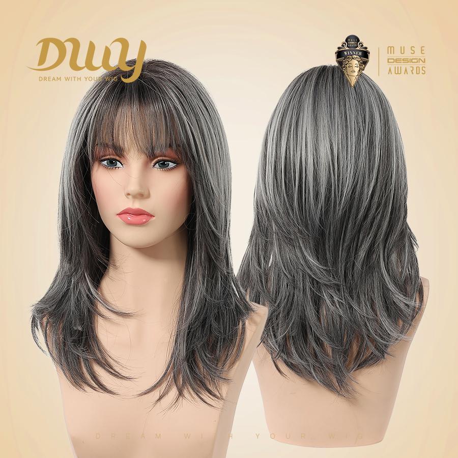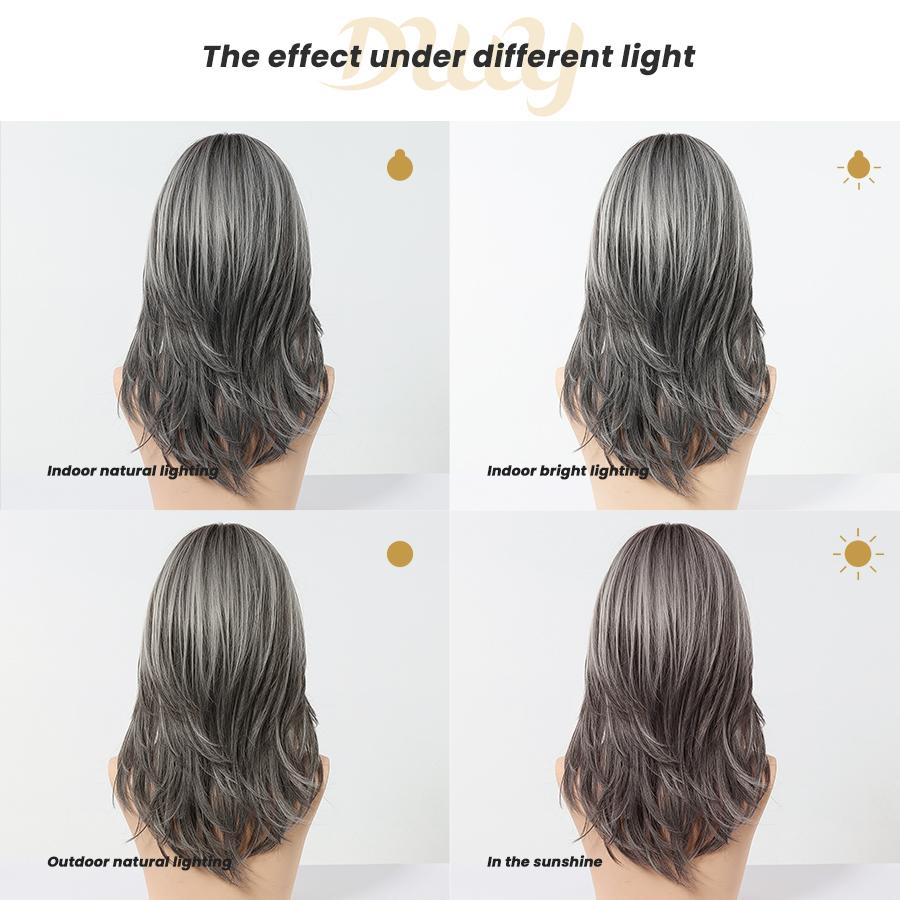 The Ember-DWY Mid-Length Straight Grey Black Wig with Highlights and Bangs is a versatile and fashionable wig that allows you to express your unique style effortlessly. With its trendy color combination, stylish bangs, and convenient glueless design, this wig is perfect for any occasion, whether you're dressing up for a night out or adding flair to your everyday look. Embrace your new style with confidence!