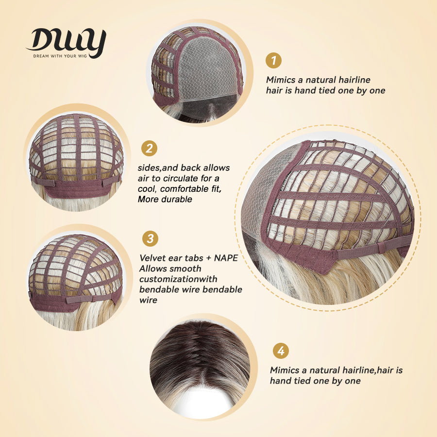 High-Quality Synthetic Fibers: Made from premium synthetic materials, the Lumi-DWY wig mimics the look and feel of real hair while being easy to style and maintain.