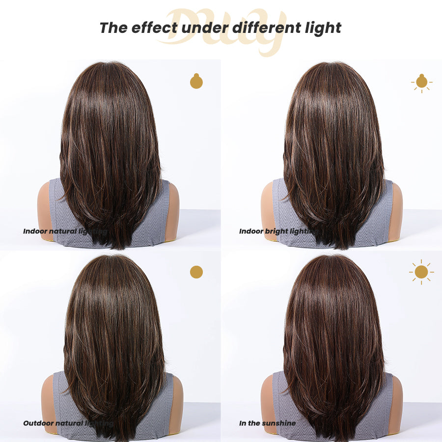The Soraya-DWY Lace Front Free Part Wig is an excellent choice for anyone looking to add a touch of elegance and versatility to their hairstyle. With its natural straight texture, light brown color with highlights, and user-friendly design, this wig is perfect for any occasion. Enjoy the freedom to express your style effortlessly with the Soraya-DWY wig!