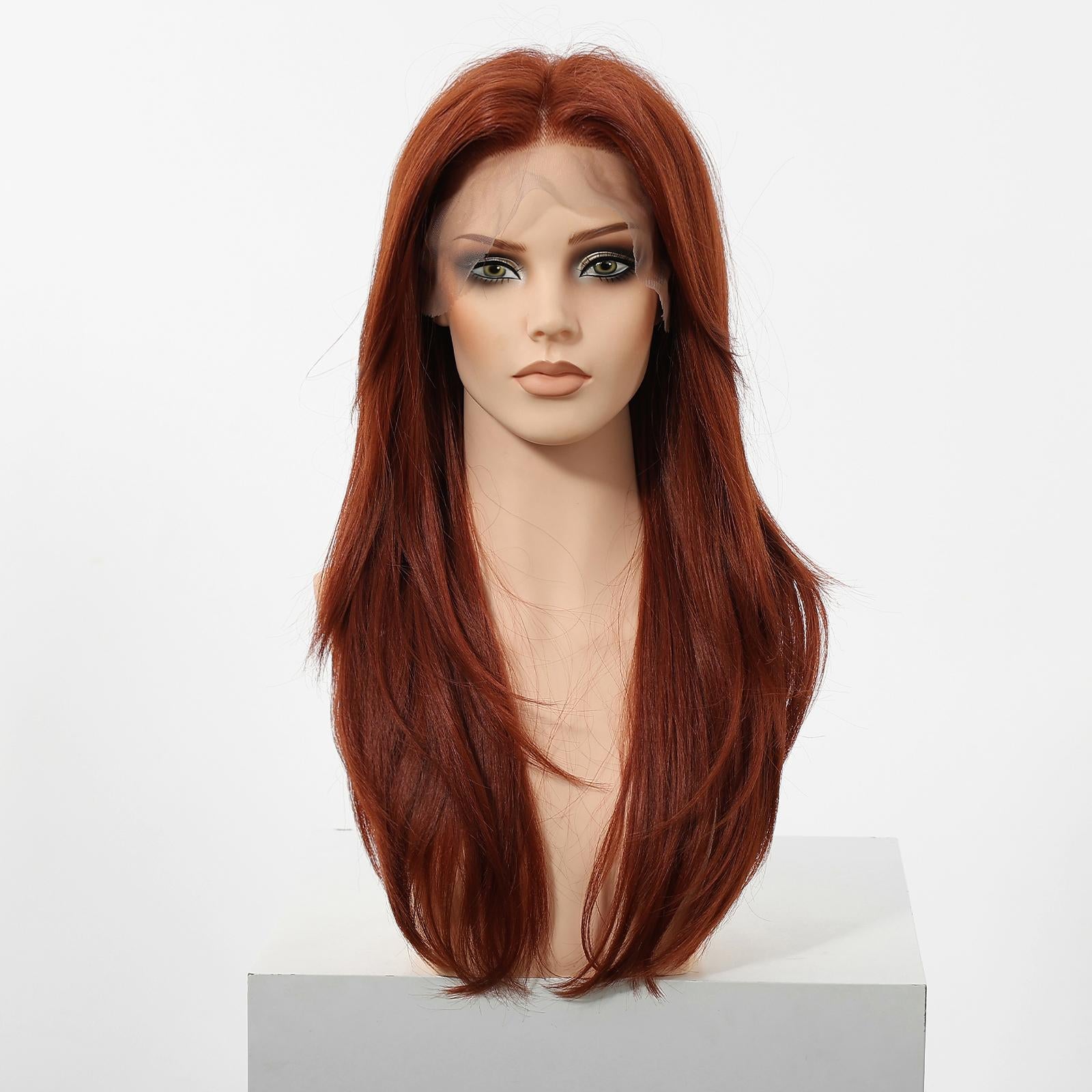 The Una-DWY 13×4 Lace Front Free Part Long-Length Layer-Cut Copper Wig is a stunning addition to any woman's wig collection. This 22-inch synthetic wig features a striking copper color and is designed with a lace front for a natural look. The layer-cut styling adds dimension and versatility, making it suitable for various occasions.