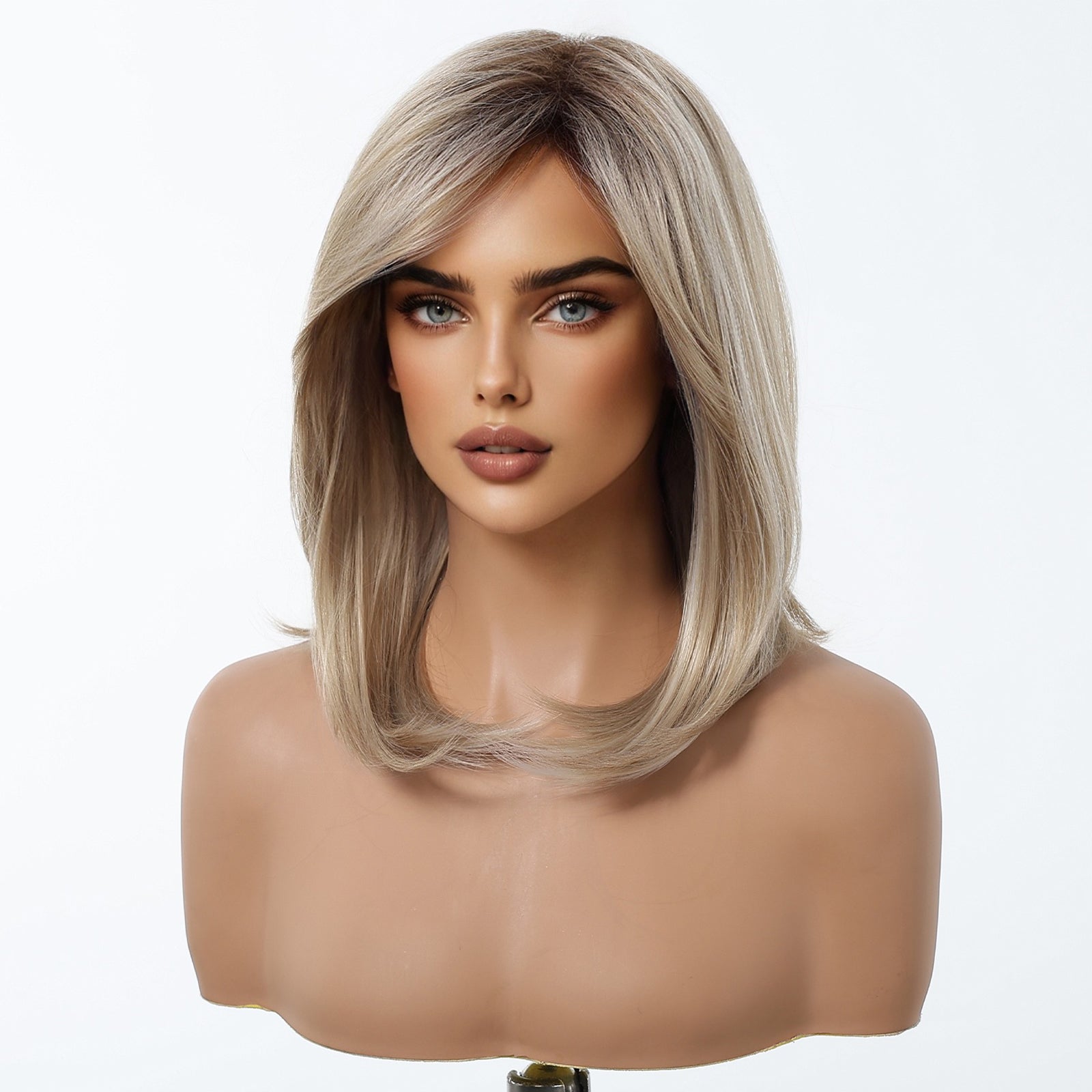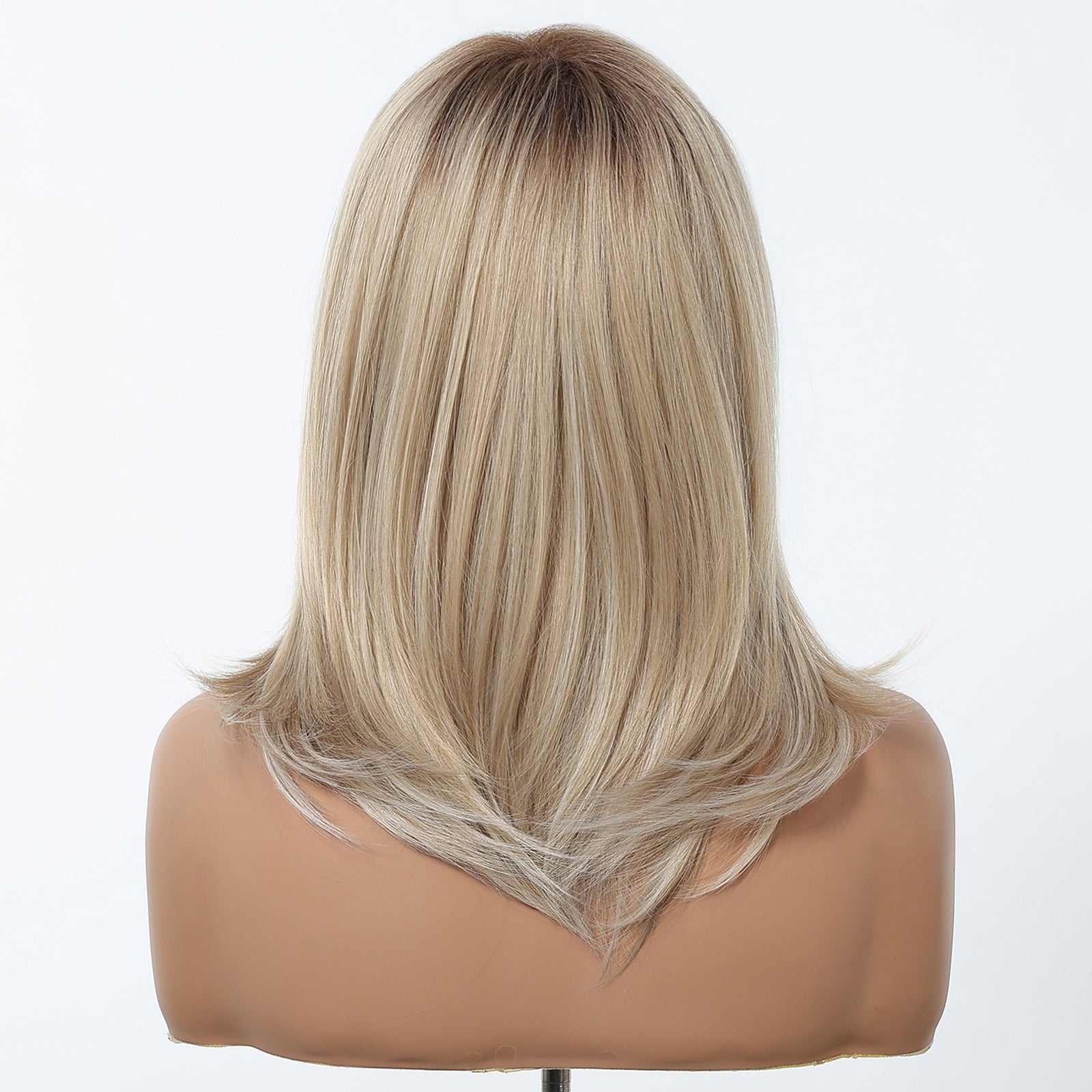 Product Description: Dwy Layered Blonde Shoulder-Length Rooted Wig