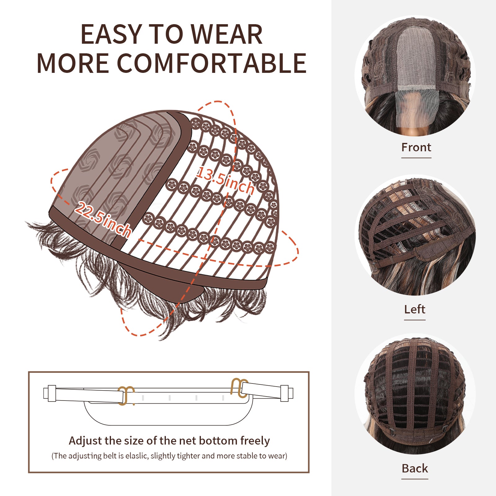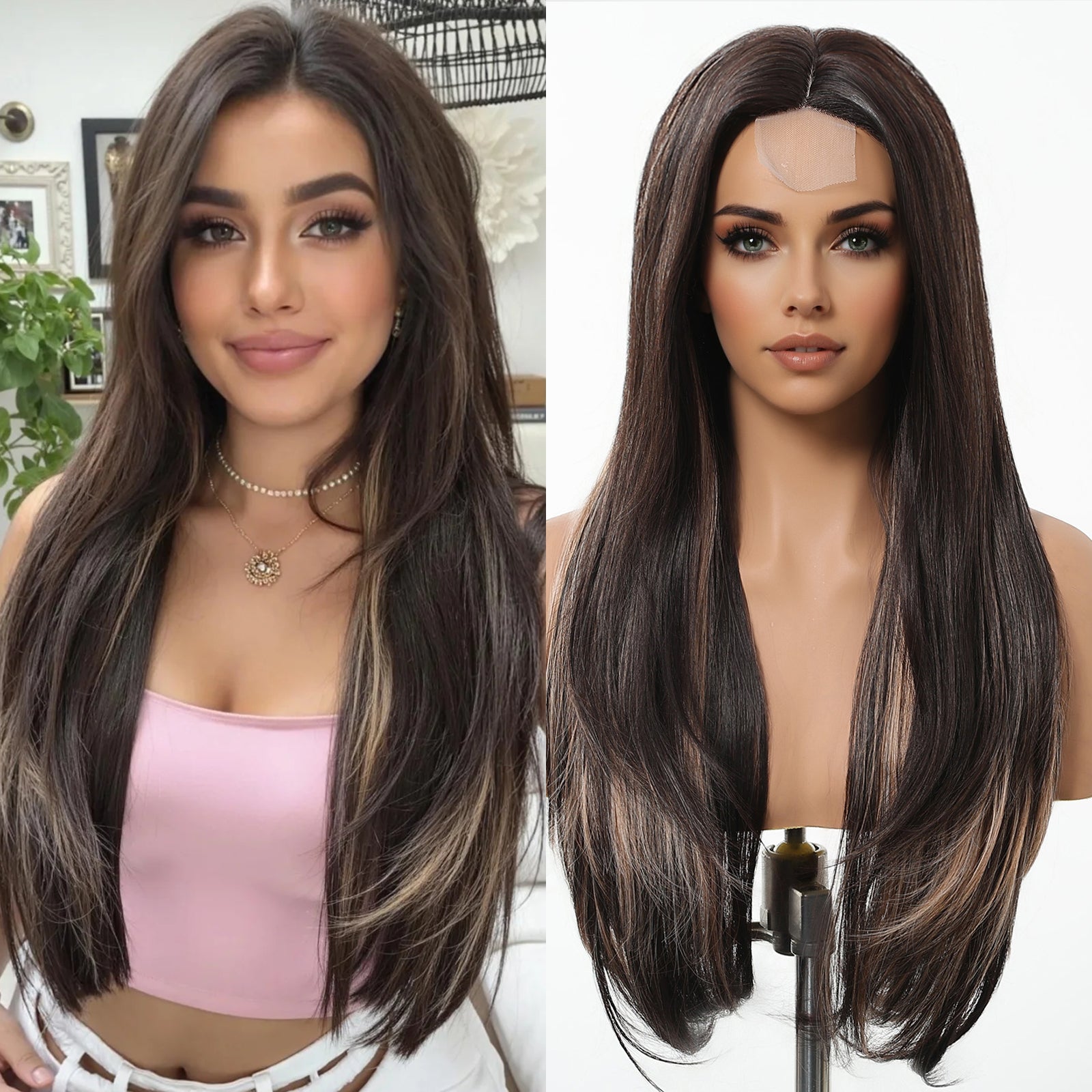 【Early Black Friday】Dwy Frontal Lace Layered Mixed Brown Natural Synthetic Wig