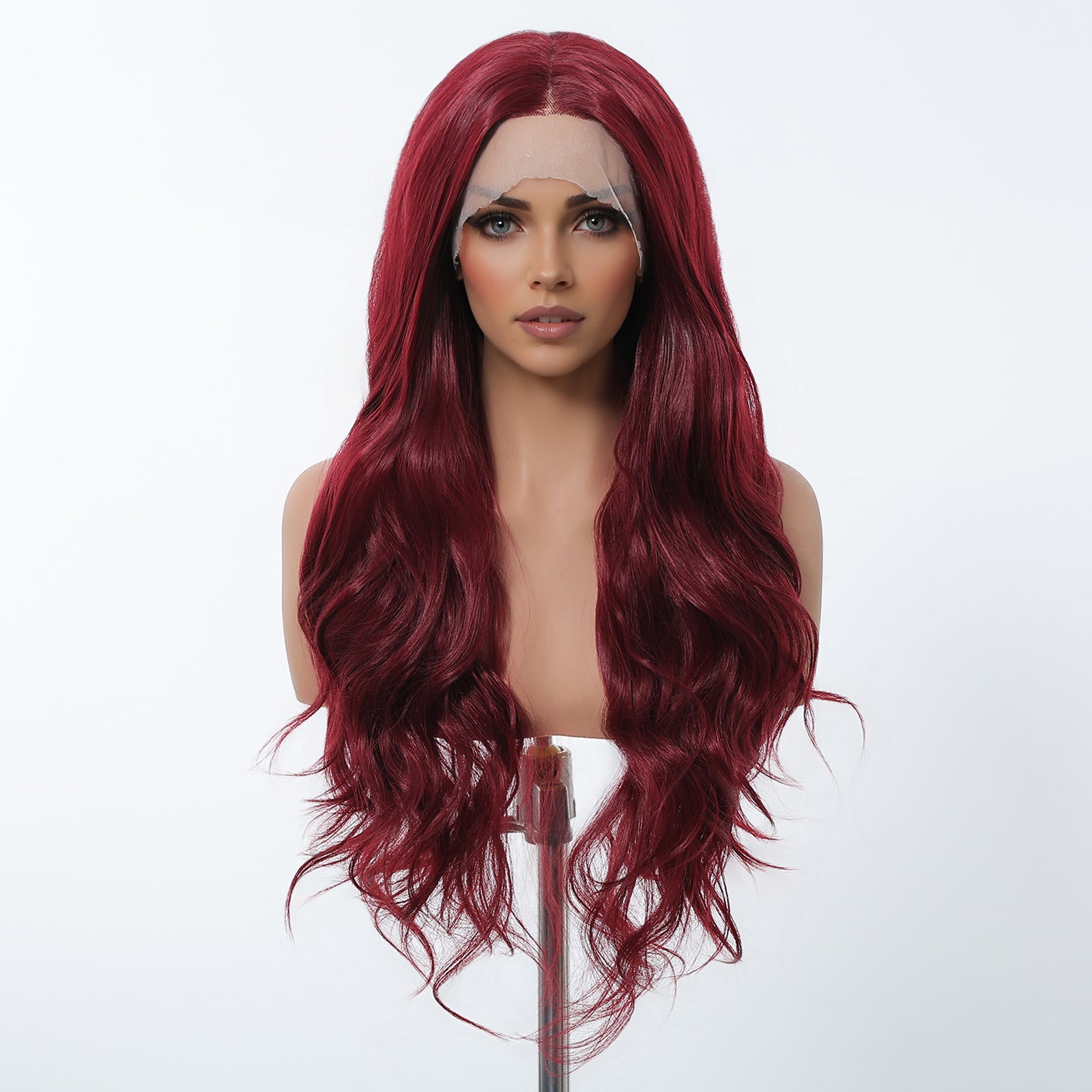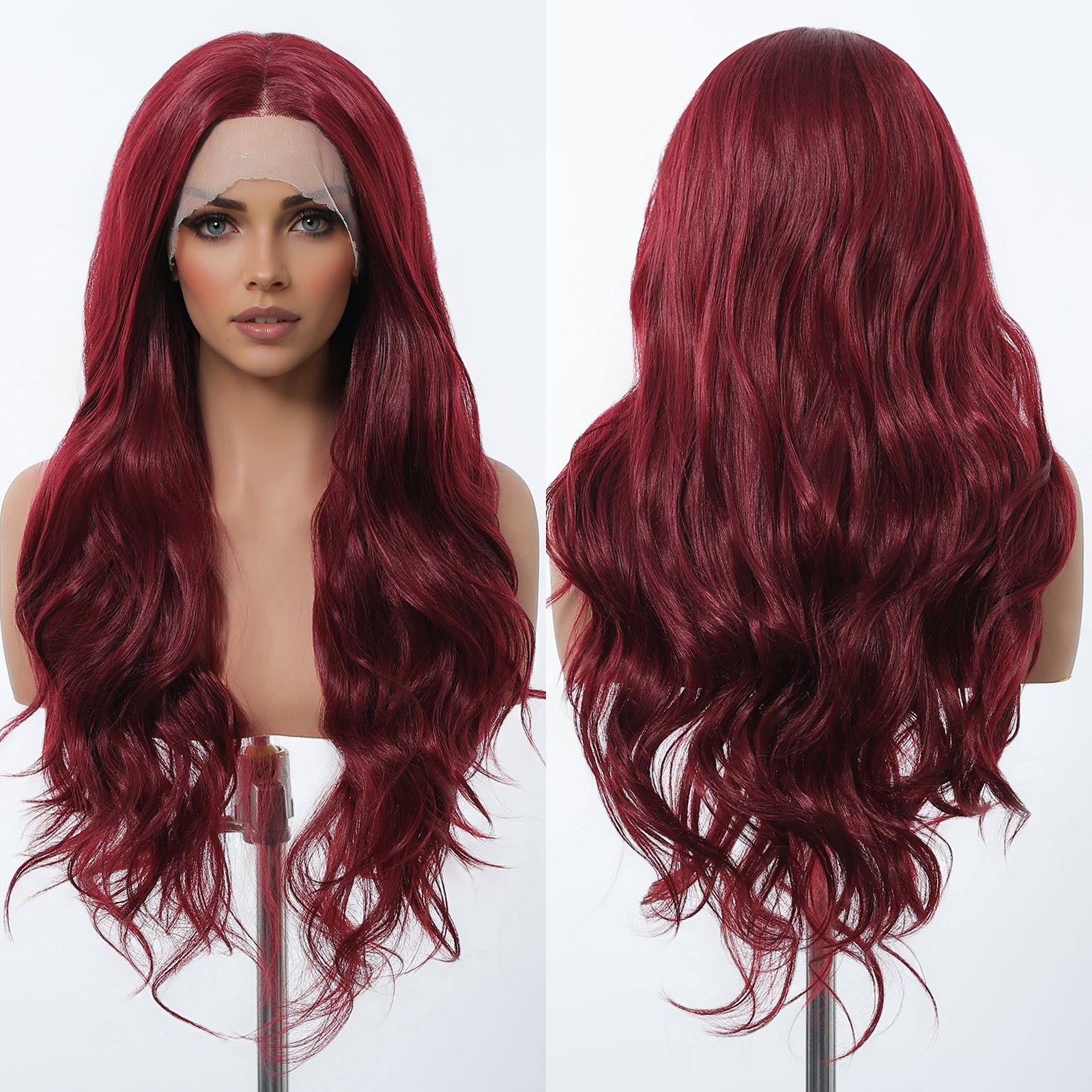 【Early Black Friday】Dwy Red Long Middle Lace Parting Wavy Synthetic Wig