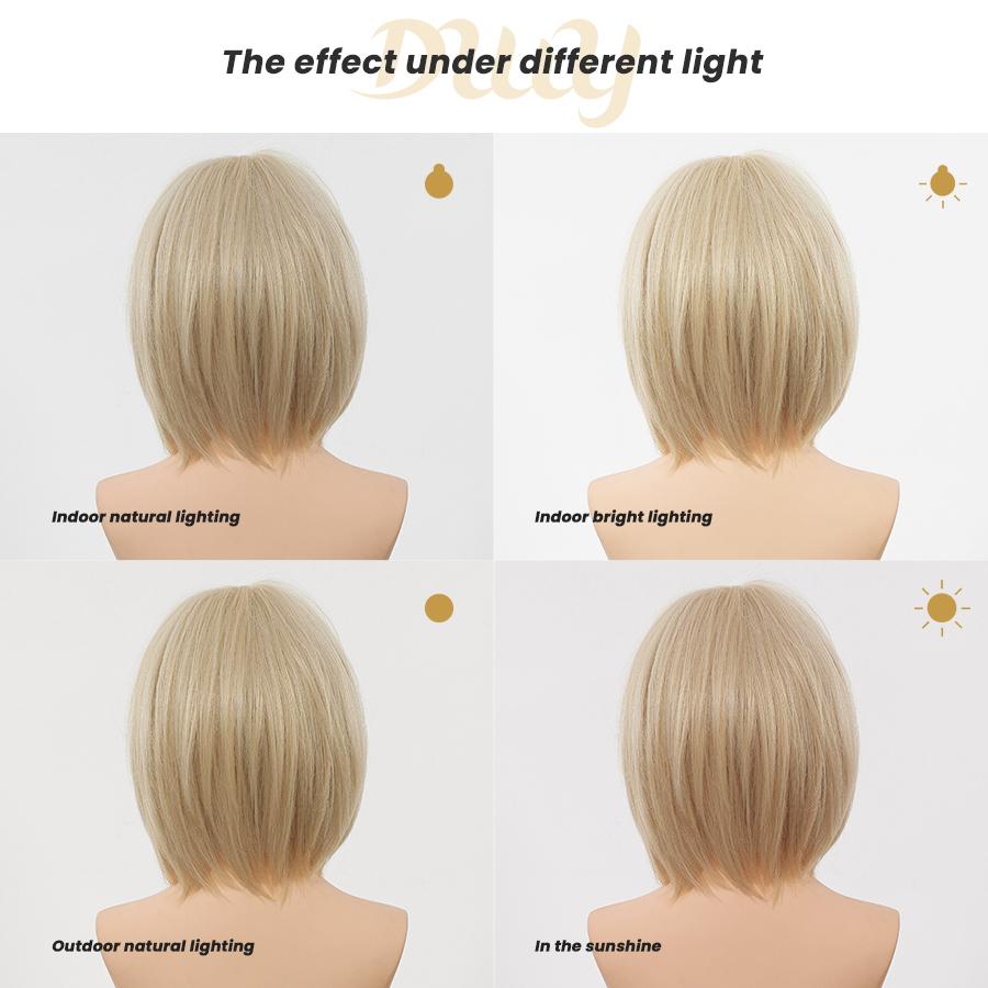 Channel Vidal Sassoon’s legendary precision with the Zora-DWY – a modern take on the classic stacked bob. This 12-inch straight blonde wig combines razor-sharp lines, featherlight layers, and cool-toned blonde hues for instant sophistication. The glueless cap slips on in seconds, delivering salon-perfect hair without appointments or adhesive.